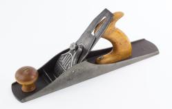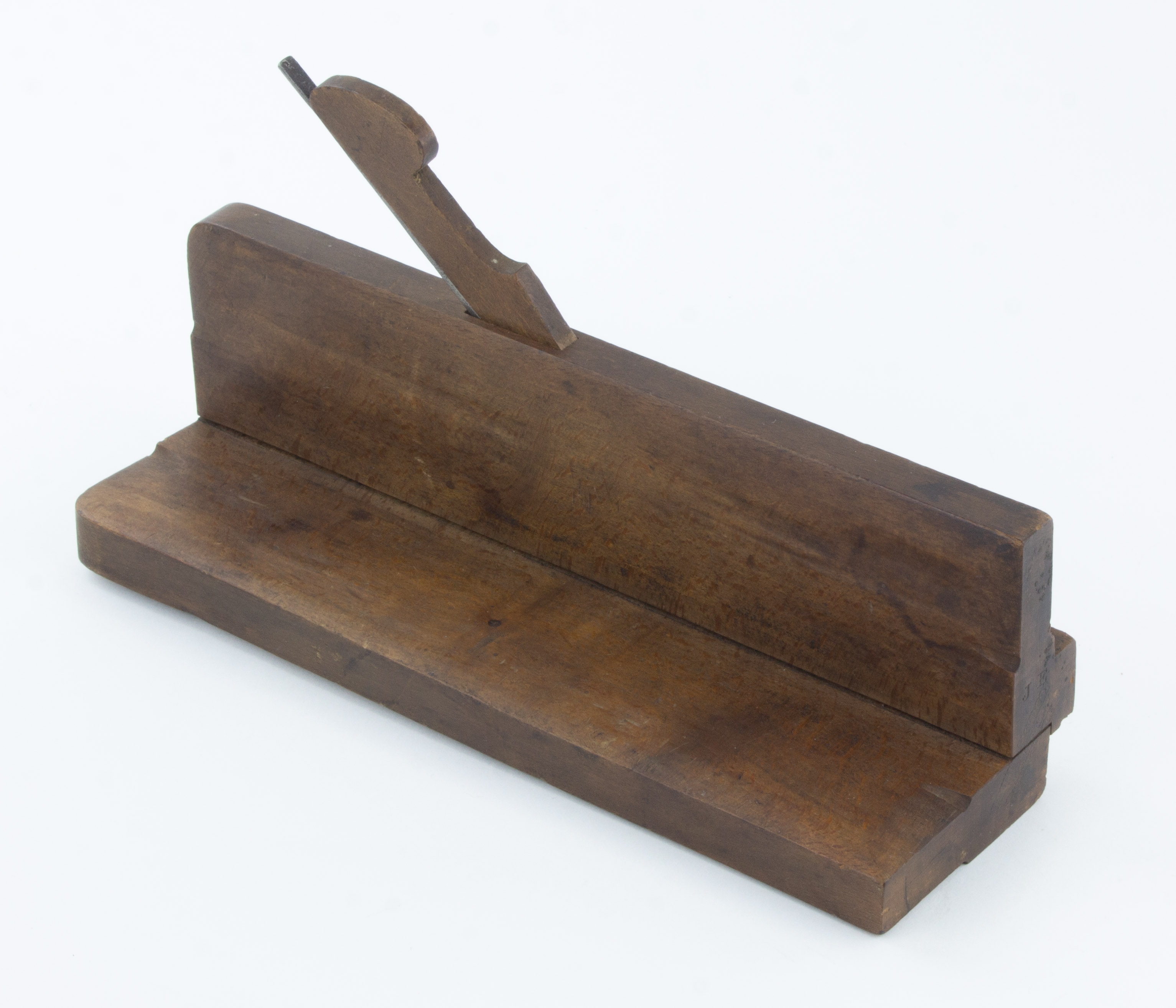 B68-619 SASH COPING PLANE. T. Tileston. Bevel profile with a second stock attached at right angles to make it easier to handle, as shown in Whelan, Figure 13:58E. 9-1/2" long with 2-1/2" fence. Wood heavily oxidized but clean. Tileston's F mark. From the collection of Jim and Becky Leamy. Good 50-100