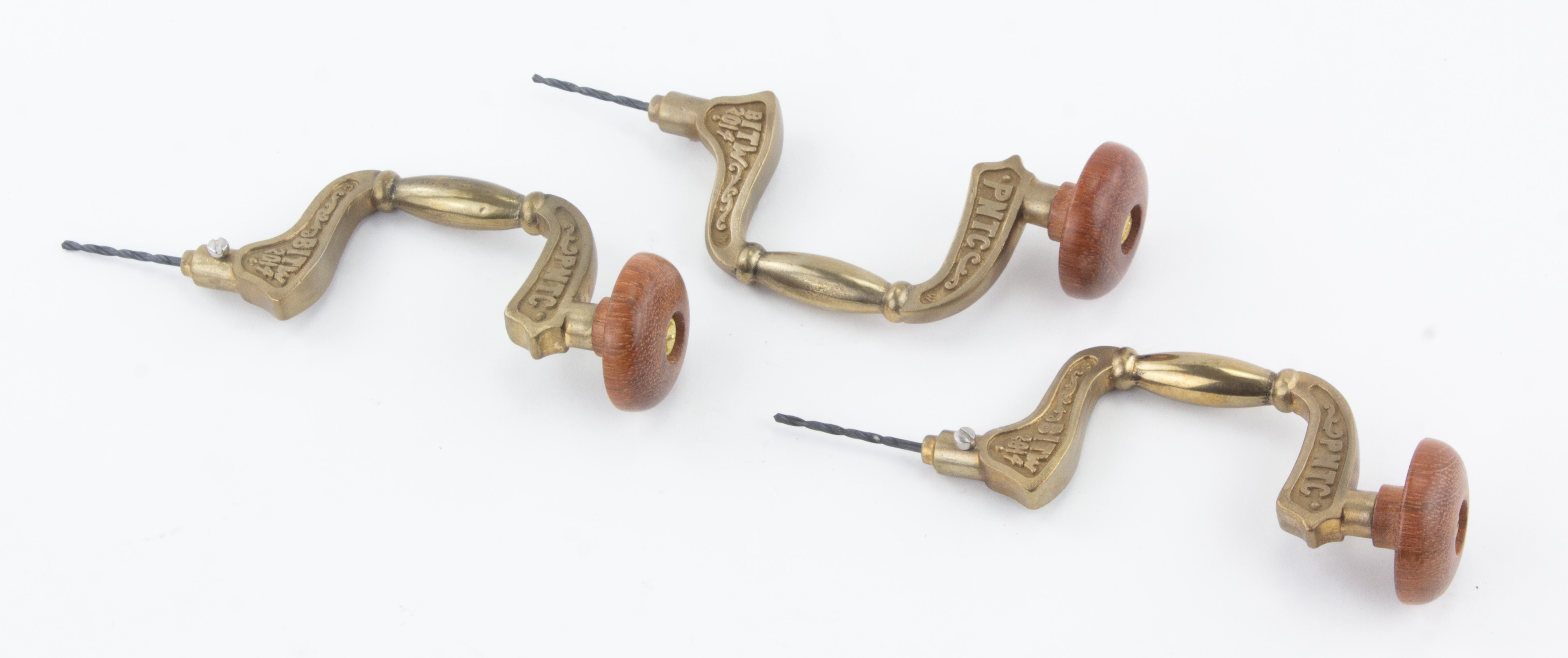 B68-670 LOT OF THREE BEST IN THE WEST FAVORS. Brace. The miniature tool favors produced by the Pacific Northwest Tool Collectors to commemorate their biannual Best in the West meets are legendary and collectibles in their own right. The 2014 favor was a model of the Palmer brace. Three examples, all clean with bits. Good+ 125-250