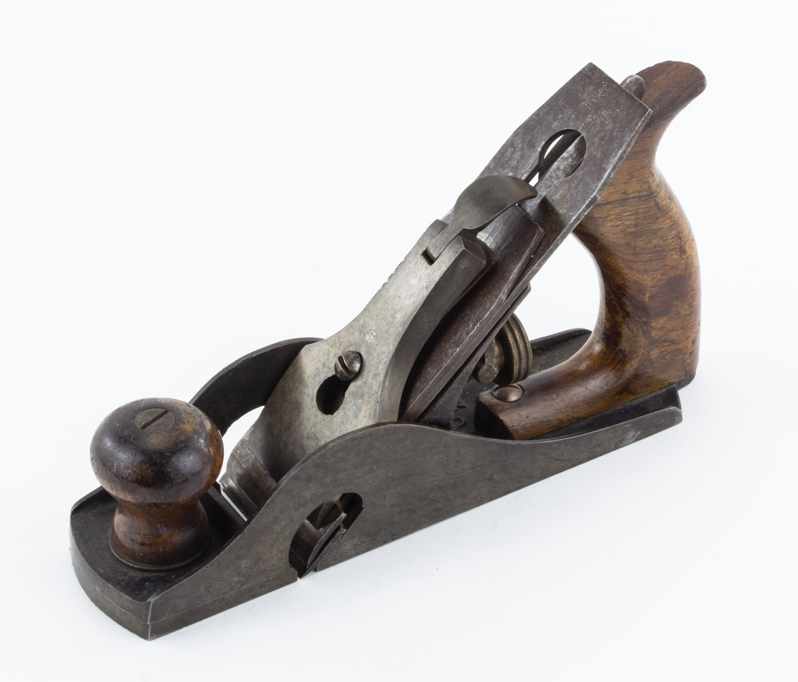 B68-727 CABINETMAKER'S BENCH RABBET PLANE. Keen Kutter No. KK 10 1/2. The Stanley No. 10-1/2 manufactured for Keen Kutter. Type 1 with throat adjustment. Number cast into bed behind frog, proper marked cutter. Japanning 80%, wood has light wear, metal oxidized with no rust or pitting. Good+ 200-400