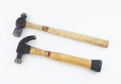 B68-764 LOT OF TWO HAMMERS. Maydole. One ball peen and one claw. Both handles have original decals. The claw handle has a long rubber tip. Both heads marked by Maydole. From the collection of David Jeffers. Good 50-100