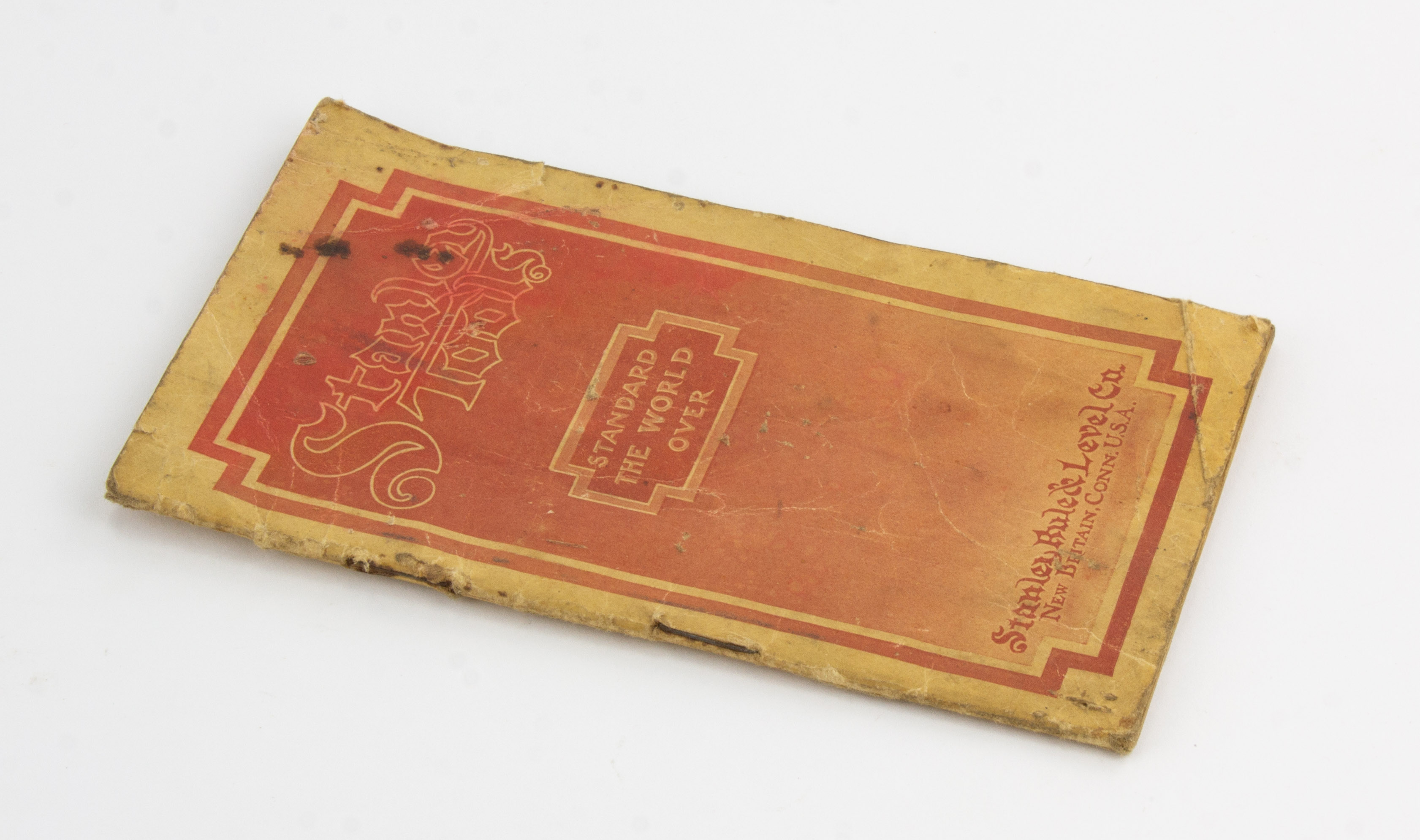 B68-768 ORIGINAL CATALOG. Stanley. 1910 "Stanley the World Over" pamphlet style catalog. 3-1/2" x 6", 24 pp. Pages worn with some staining but intact. Includes an instruction sheet for the combination plane cam stop. Good 40-80