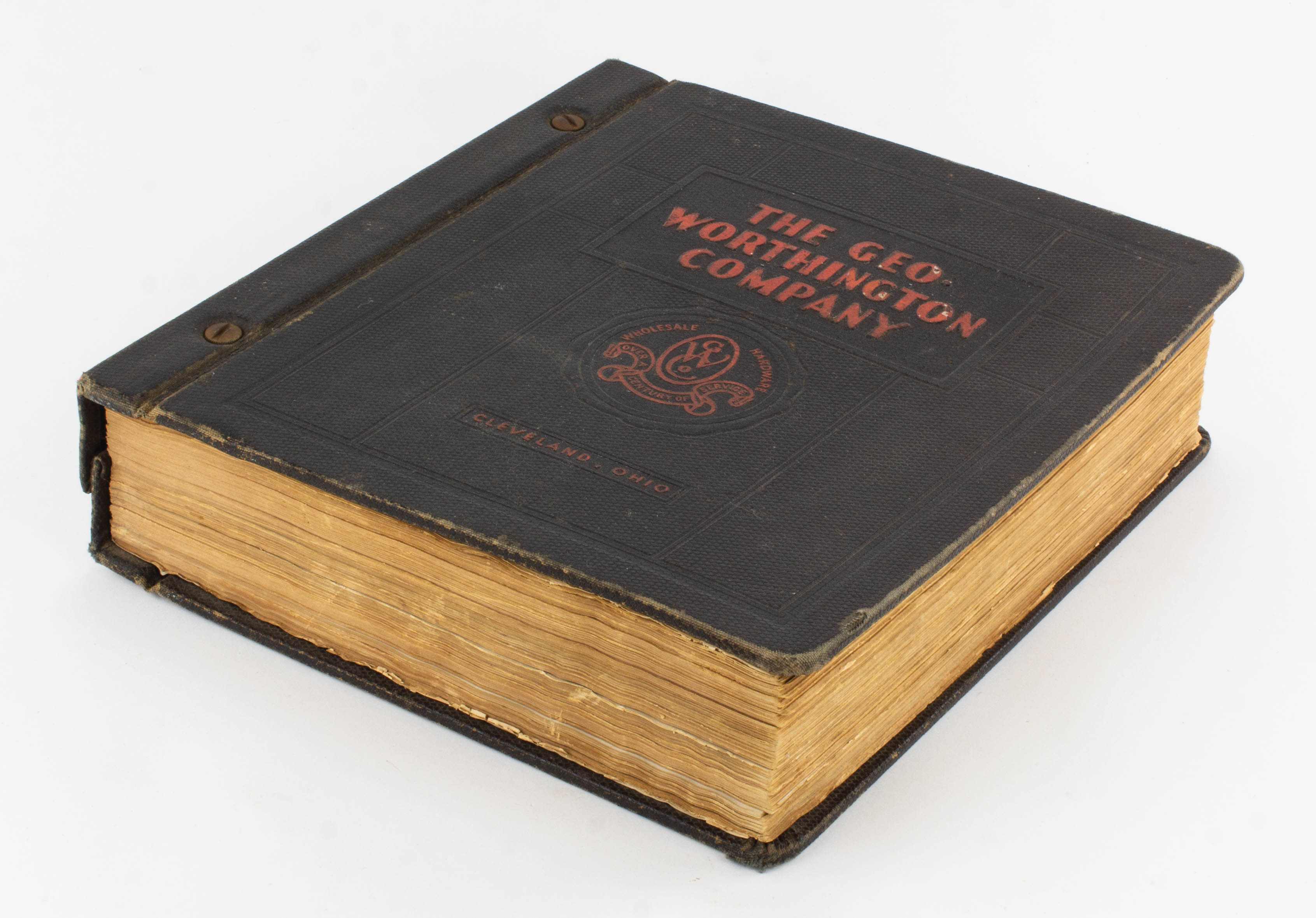 B68-773 ORIGINAL CATALOG. Geo. Worthington Co. 1941 catalog of the Cleveland based hardware distributer. Binder format with 1,696 pages; hardbound, 11-1/2" x 12-1/2", pages have some foxing and covers are worn. Good 80-160