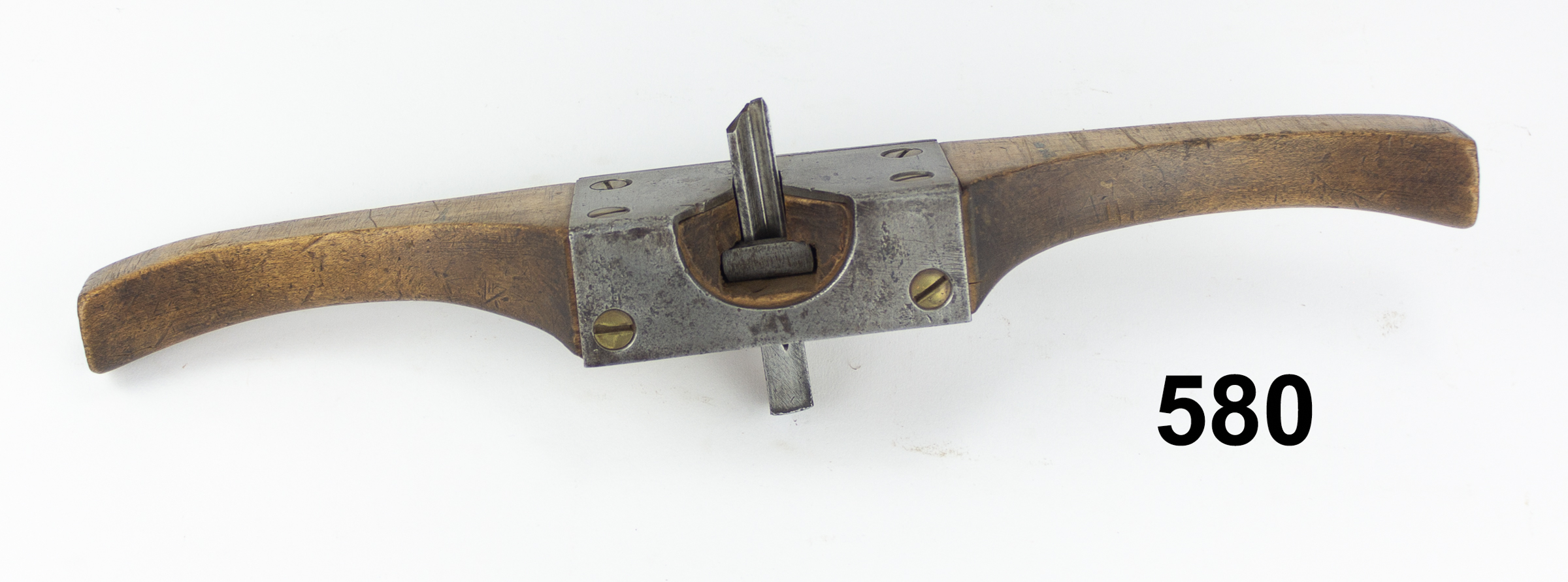 B60-580 COACHMAKER'S V-GROOVING ROUTER. Unsigned and user made, 18" across with gullwing shape, cast iron and brass cutter holder, including a brass locking wingnut. From the collection of Hank Allen. Fine 80-150
